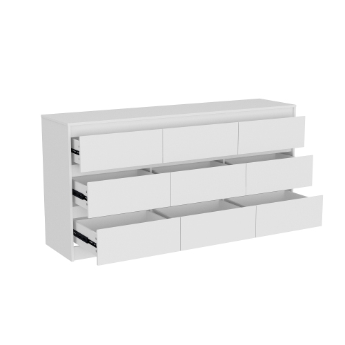 Famapy 9 Drawer Dresser for Bedroom with Deep Drawers, Large Floor Wood Dressers, Handle Free, Modern Long Dressers,(63" W x 15.7" D x 31.5") White