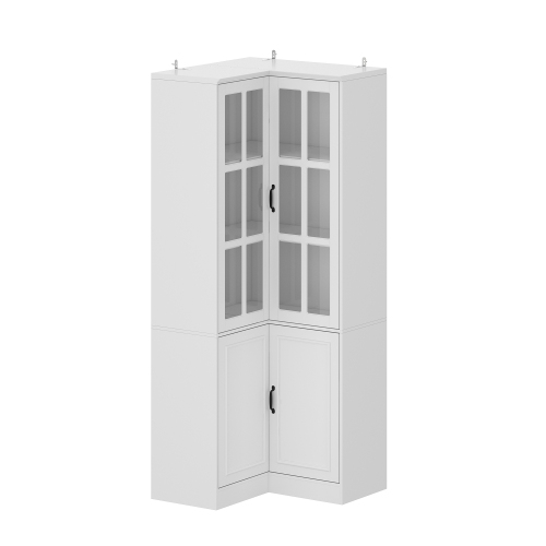 Famapy MDF 5-Shelf Corner Bookcase with Tempered Glass Doors – Modern 4-Door Storage Cabinet for Books and Décor (31.5” W x 78.9” H x 31.5” D),White