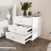 Add a touch of modern elegance to your bedroom or living space with this stylish 3-drawer nightstand. Featuring gold-accented legs and handles, it offers ample storage for your essentials. The clean white finish and sleek design make it a perfect fit for contemporary interiors, providing both functionality and aesthetic appeal.