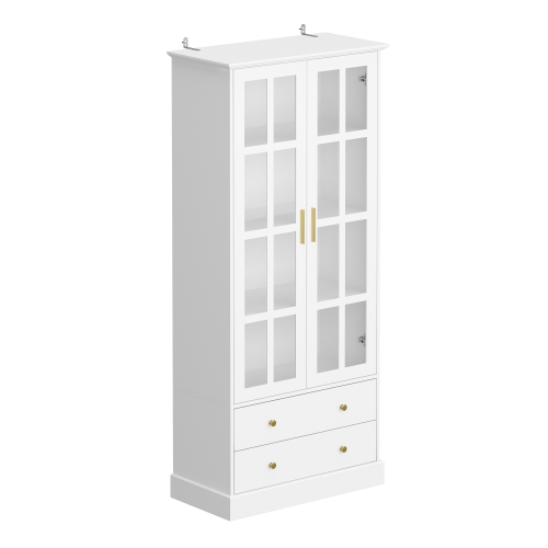 Famapy Modern White Bathroom Cabinet with Glass Doors, Gold Handles & Adjustable Shelves – Stylish Storage and Display Solution for Bathrooms, (31.5” W x 15.7” D x 70.1” H),White
