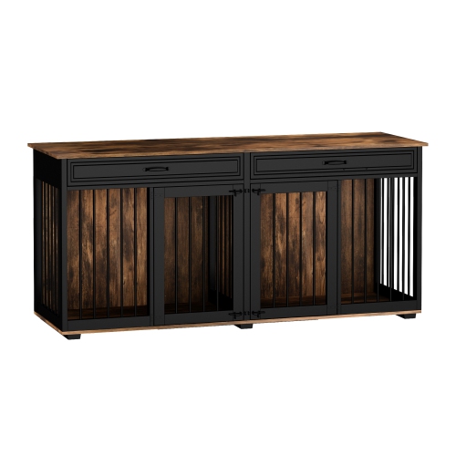 Famapy Rustic Wooden Indoor Dog Crate Furniture – Multi-Functional Large Pet House with Lockable Doors, Storage Top, and Ventilation – Stylish Dog Kennel for Living Room or Bedroom