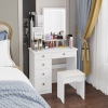 Famapy Vanity Desk Set Makeup Table with Large Lighted Mirror, Dressing Table with 5 Drawers, Storage Shelves & Cushioned Stool for Bedroom,(31.5”W x 15.7”D x 55.1”H) White