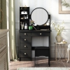 This elegant vanity desk set is the perfect addition to any bedroom, featuring a large sliding mirror with adjustable tri-color LED lighting for a flawless makeup application experience. With five spacious drawers and multiple storage shelves, it provides ample space to organize cosmetics, skincare products, and accessories, keeping everything neat and accessible.