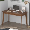 Enhance your workspace with the Famapy Wooden Writing Desk. With a modern design and walnut finish, this desk offers two convenient drawers for storage, making it ideal for home offices or study areas.