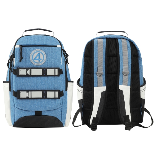 Show off your love for Marvel’s First Family with this blue Fantastic Four backpack, featuring the team’s iconic logo for a bold and heroic design. Perfect for everyday use, the bag includes a spacious interior laptop sleeve, a front zipper pocket for quick access to essentials, and front webbing skate straps for added functionality. Made with durable poly and PU materials, it measures 12” W x 17.5” H x 6” D. Easy to maintain, just wipe it clean to keep it looking fresh.