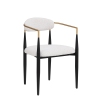 Elevate your space with these sleek upholstered chairs featuring gold-trimmed iron frames and curved open backrests. Plush seating meets minimalist toothpick design for contemporary elegance. Per chair: 22.75"W x 21.75"D x 31.50"H. Minimal assembly (tools included). Instantly transform any dining area.