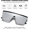 Fashion Oversized Flat Top Shield Sunglasses Square Rimless with HD Lenses& Case
