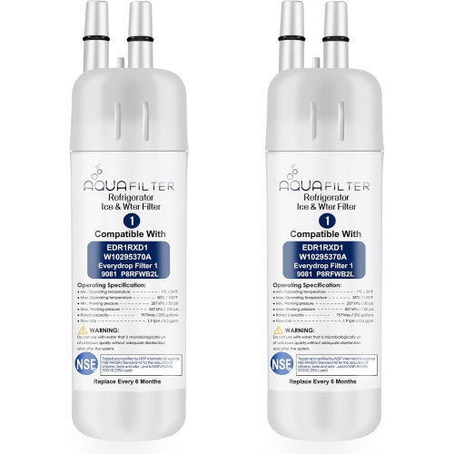 FILTER1 W10295370A Refrigerator Water Filter Replacement ensures clean, fresh-tasting water by reducing chlorine, lead, and other impurities. Compatible with EDR1RXD1 and various refrigerator models, this reliable filter maintains optimal performance. Easy to install and long-lasting, each 2-pack provides convenient, cost-effective replacement for pure water every day.