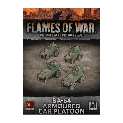 BA-64 Armoured Car Platoon (Plastic) (SBX86)includes four plastic BA-64 Armoured Cars and two Unit CardsThe light BA-64 armoured car is small and cheap to build. They advance down roads and quickly find and report the enemyâs positions.</sp...