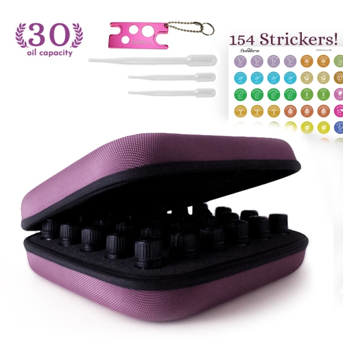 floraVerve Essential Oils Carrying Case (Holds 30PCS 5, 10 & 15mL), Bottle Opener & Cap Sticker