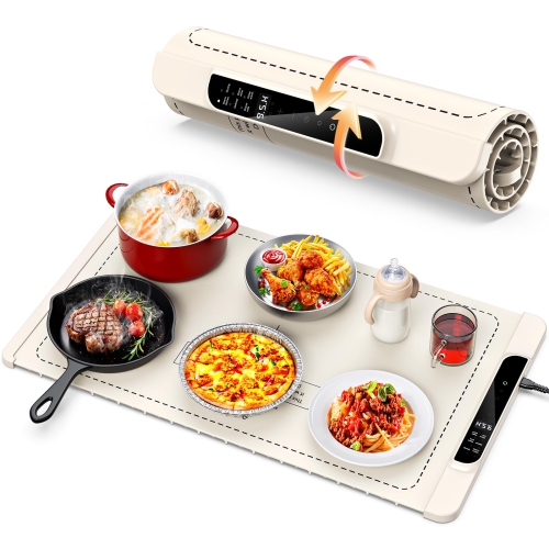 Food Warming Mat, Electric Food Warmer & Warming Tray with 6 Temperature Modes, Portable Food Warmer Mat for Dishes, Milk, Coffee, Wine & Tea