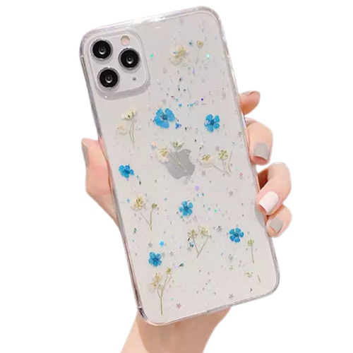 For Apple iPhone 11 Pro Max Blue Smart Shockproof Dry Flower Glitter Case TPU Back Cover