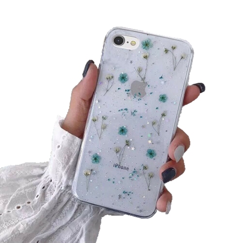 For Apple iPhone 7 Plus / 8 Plus Blue Smart Shockproof Dry Flower Glitter Case TPU Back Cover