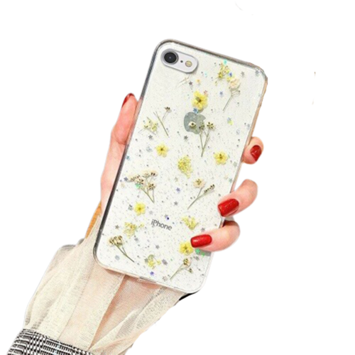 For Apple iPhone 7 Plus / 8 Plus YELLOW Smart Shockproof Dry Flower Glitter Case TPU Back Cover