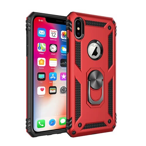 For Apple iPhone XS Red Military Grade 360 Degree Rotating Metal Magnetic Ring Car Mount Holder Kickstand Shockproof Heavy Duty Cover