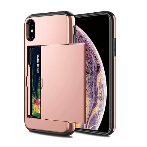 Hidden compartment design. The slider door on the back can holds 1-2 cards securely(Credit card/ Debit card/ ID/ Drivers license/ folded cash). It’s very useful and convenient for someone who doesn’t want carry a wallet or a purse around.Heavy duty dual layer hybrid armor case with Anti-scratch hard PC back panel and soft shock-absorbing TPU interior for maximum impact resistant protection.