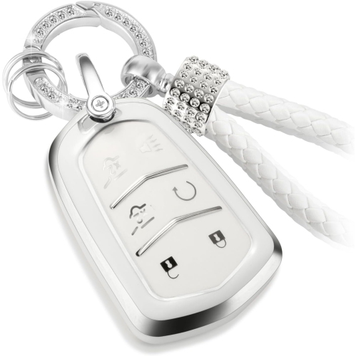 for Cadillac Key Fob Cover with Luxury Diamond Bling Braided Rope Keychain, Upgraded Soft Key Case