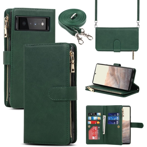 for Google Pixel 6 Zipper Wallet Case,[9 Card Holder][Cash Pocket] [Magnetic Closure][Wrist Strap] Premium