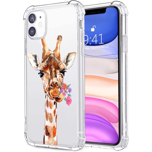 for iPhone 11 Pro Case Floral Flowers Giraffe, Cute Pattern Animal Design Clear TPU Phone Cases Soft Flexible