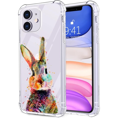 for iPhone 11 Pro Max Case Colorful Rabbit, Cute Animal Pattern Design Clear TPU Phone Cases Soft Flexible Slim