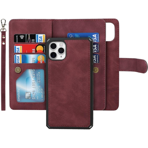 for iPhone 11 Pro Wallet Case with Card Holder and Wrist Strap, PU Leather Kickstand Card Slots Magnetic
