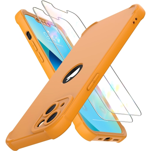 for iPhone 13 Case with [2 Tempered Glass Screen Protector],[Camera Protection] Shockproof Soft Silicone Back