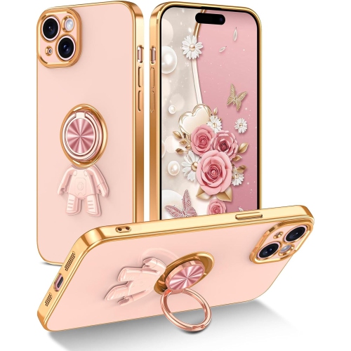 for iPhone 15 Plus Case with Magnetic Ring Stand Shockproof Drop Protection Anti-Scratch Slim Thin Soft TPU