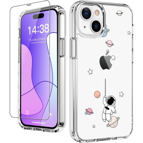 for iPhone 15 Plus Case with Screen Protector - Crystal Clear Cover with Fashionable Designs for Women