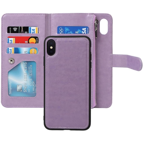 for iPhone X/iPhone Xs Wallet Case,2 in 1 Detachable Flip Wallet Case with Zipper [Premium Leather][6 Card