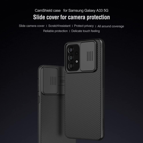 Camera Protection Design - Slide camera protective cover protects the camera from scratches and protect your privacy. Adding a fastener to make the Samsung Galaxy A33 5G cover tight when you close it.And there is no need for glass camera protector.Non-Slip Design Special Non slip bars design on both sides offers perfect grip and smooth touch feeling.The camera case effectively prevents fingerprint marks, keep your Samsung A33 5G cover clean and fresh.Anti-Fall Shockproof