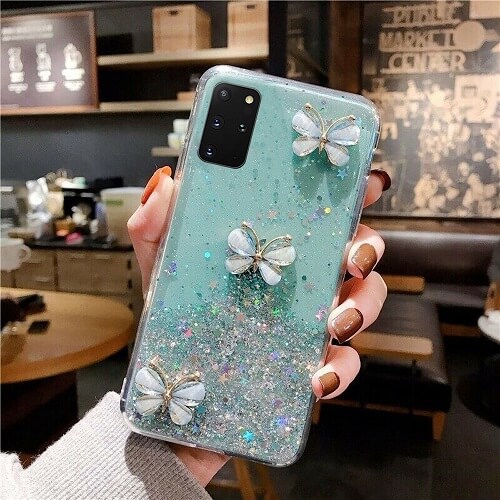 For Samsung Galaxy S20 Plus Case Green Smart Shockproof Glitter Crystal butterfly Wrist Strap Cover Case