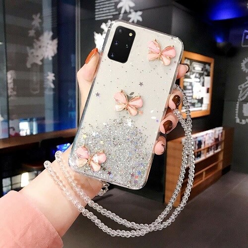 For Samsung Galaxy S20 Plus Case White Smart Shockproof Glitter Crystal butterfly Wrist Strap Cover Case