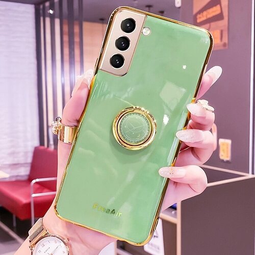 For Samsung Galaxy S21 Plus Green Ring Case Luxury Stream Plating Elegant Cover Case
