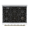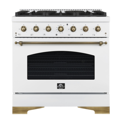 Forno Antico 36-inch Dual Fuel Range White and Antique Brass Design with 6 Sealed Gas Burners and Electric Convection Oven