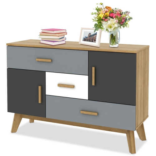 It is designed with spacious cabinet top, 2 enclosed doors and 3 drawers, which is flexible for you to store items in different sections. Moreover, the inner shelf features 3 adjustable heights to satisfy different needs. Durable engineered wood ensures long service time and is not easy to deform. What's more, the anti-toppling device prevent the cabinet from tipping over for security. With elegant and modern design, this storage cabinet is suitable for your bedroom, living room, study and more.