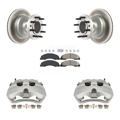 Front Brake Caliper Coat Rotor And Semi-Metallic Pad Kit For Ford E-350 Super Duty E-450 KCG-101454N