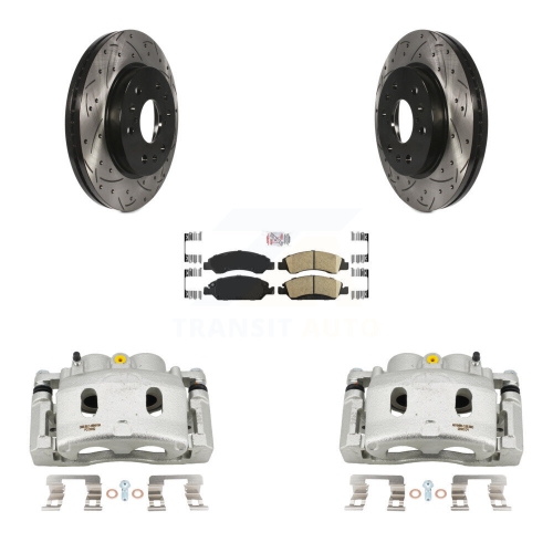 Front Brake Caliper Drill Slot Rotor Ceramic Pad Kit For GMC Sierra 1500 Chevrolet Tahoe KCD-100292N