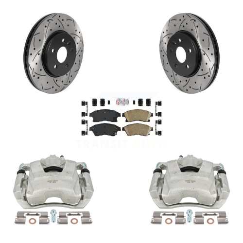 Front Brake Caliper Drill Slotted Rotor Ceramic Pad Kit For 2013-2014 Chevrolet Sonic RS KCD-100105N