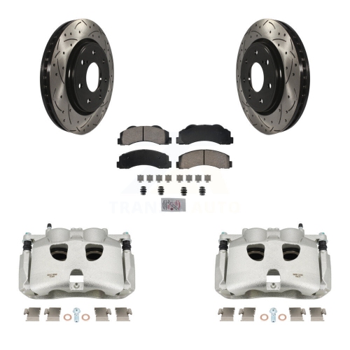 Front Brake Caliper Drill Slotted Rotor Ceramic Pad Kit For Ford F-150 With 7 Lug Wheels KCD-100389N
