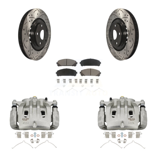 Front Brake Caliper Drilled Slot Rotor Ceramic Pad Kit For Lexus RX350 Toyota Highlander KCD-100194C