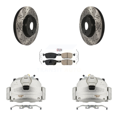Front Brake Coated Caliper Drill Slot Rotors Ceramic Pad Kit For 2013-2018 Ford Focus ST KCD-100310N
