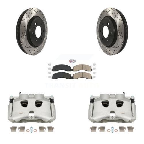 Front Brake Coated Caliper Drill Slotted Rotors Ceramic Pad Kit For 2018-2020 Ford F-150 KCD-100394N