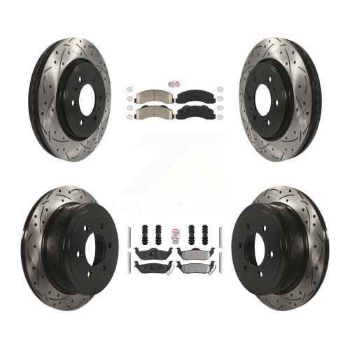 Front Ceramic Rear Semi-Metallic Pad Coat Drill Slot Disc Brake Rotors Kit For Ford F-150 KDA-102489