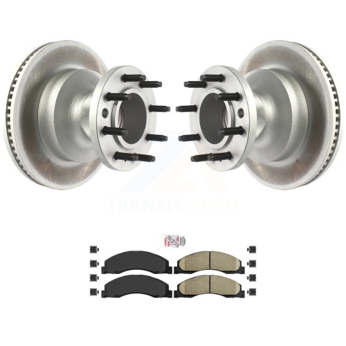 Front Coat Disc Brake Rotor Hub Ceramic Pad Kit For Ford E-350 Super Duty E-450 Econoline KGA-104438