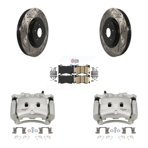 Front Disc Brake Coated Caliper Drilled Slotted Rotor & Ceramic Pad Kit For INFINITI Q50 KCD-100212N