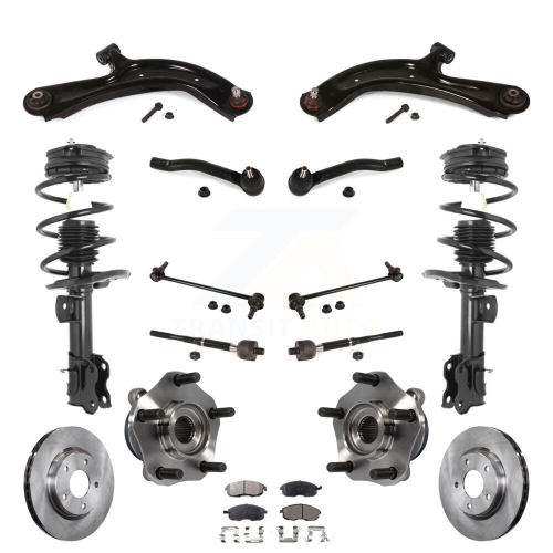 Front Disc Rotors Brake Pad Bearing Shock Assembly Suspension Kit (15Pc) For Nissan Sentra KM-100381