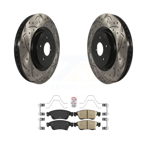 Front Drill Slot Brake Rotor Ceramic Pad Kit For INFINITI Q60 Sport Without Package KDA-100306