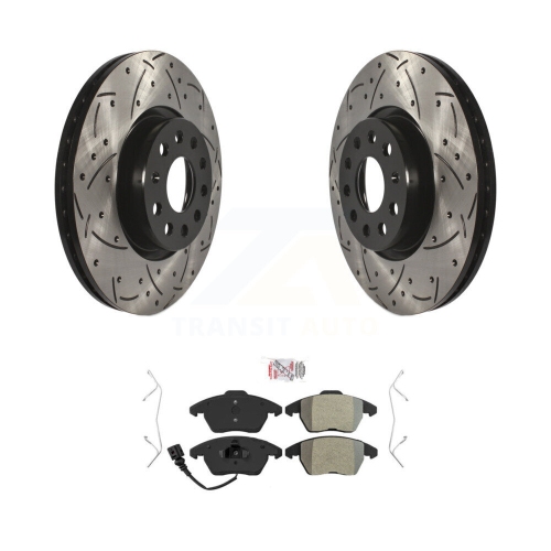 Front Drill Slot Brake Rotor Semi-Metallic Pad Kit For Volkswagen Jetta Beetle Rabbit GTI KDA-100087