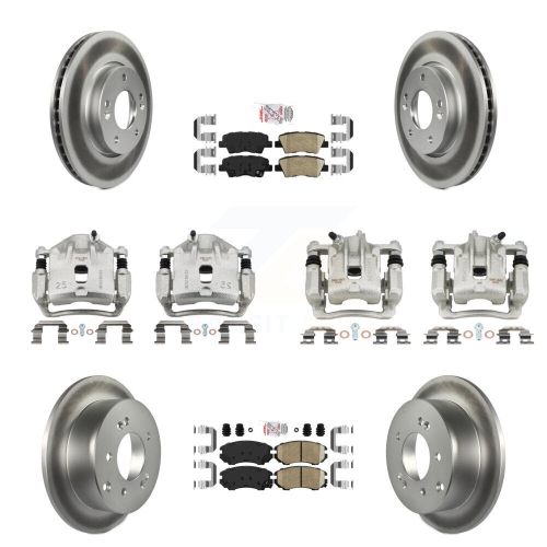 Front Rear Brake Caliper Coat Rotor & Ceramic Pad Kit (10Pc) For 2010-2011 Kia Soul 2.0L KCG-101499N