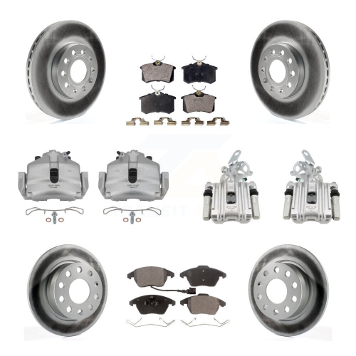 Front Rear Brake Caliper Coat Rotor & Ceramic Pad Kit (10Pc) For Volkswagen Jetta Beetle KCG-100983T